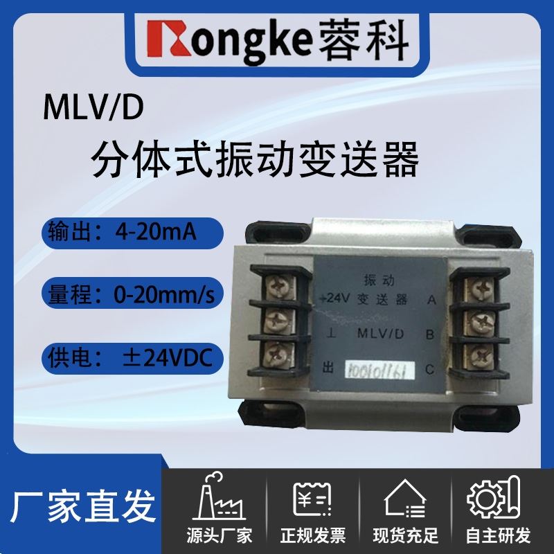 RK/MLV/D分体式振动变送器:产品描述:MLV/D分体式振动变送器同MLV系列振动速度传感器配套使用。 监测旋转机械的绝对振动,如轴瓦、机壳、机架振动等,并输出振动的速度(烈度)、位移值。