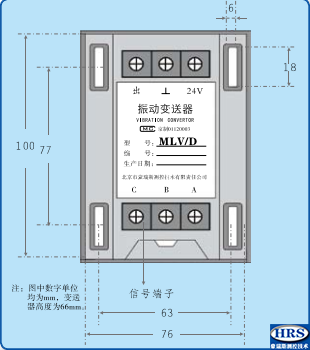 RK/MLV/D分体式振动变送器:MLV/D分体式振动变送器同MLV系列振动速度传感器配套使用。 监测旋转机械的绝对振动,如轴瓦、机壳、机架振动等,并输出振动的速度(烈度)、位移值。